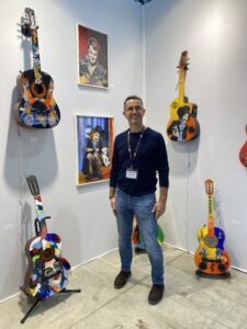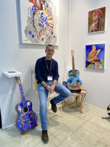 Pendant trois jours, j’ai pu présenter mon travail : peintures, créations lumineuses et mes guitares décorées, uniques en leur genre. Ce fut un vrai bonheur de partager ma démarche artistique avec un public curieux et passionné, d’échanger sur mes inspirations et de voir l’intérêt suscité par mes œuvres.