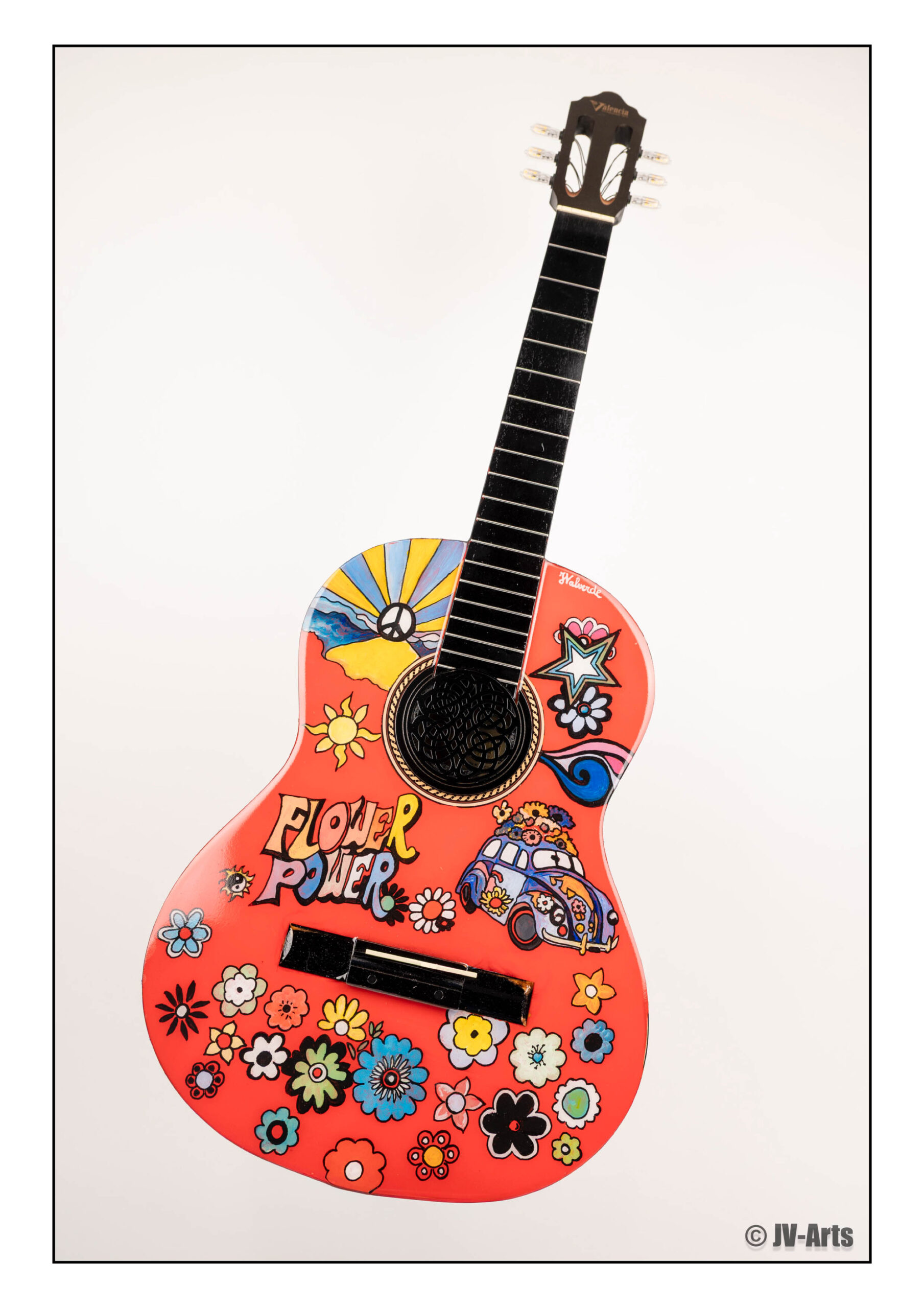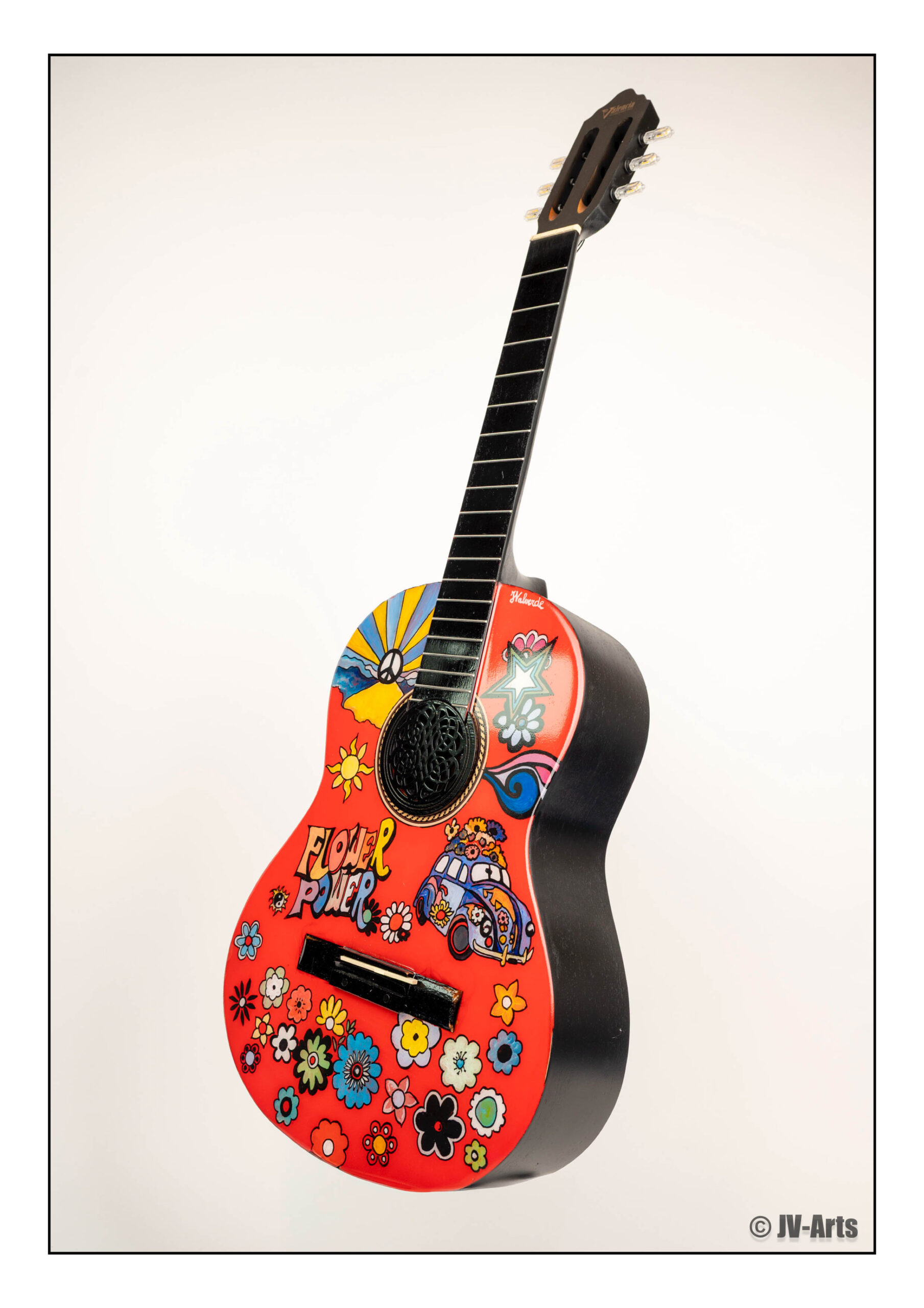 12 Guitare décorée « Soixante-huitard » avec éclairage Led et enceintes Bluetooth