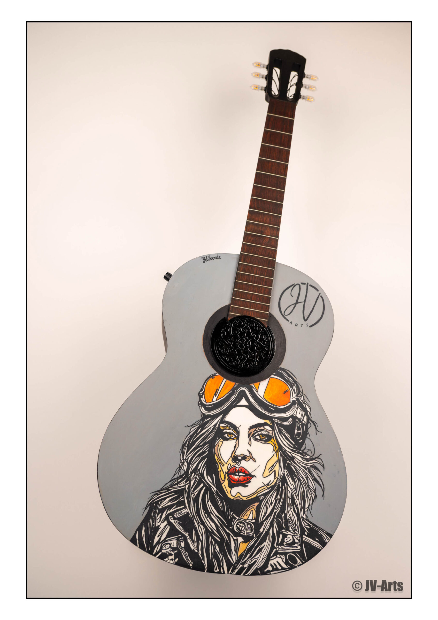 08 Guitare décorée « Fille au chignon » avec éclairage Led et enceintes Bluetooth