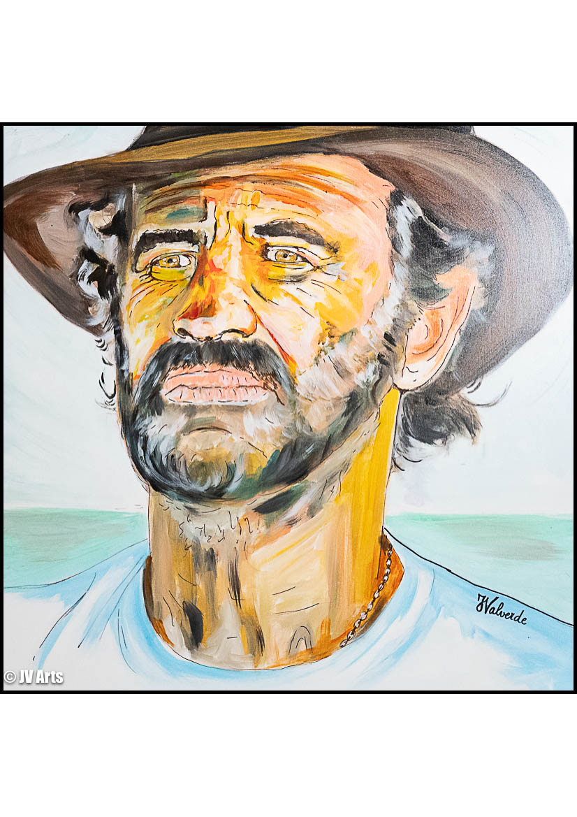 Les couleurs vibrantes et contrastes forts apportent de la profondeur et de l’énergie à ce portrait. Les détails minutieux, tels que les rides marquées et l’expression pleine de caractère, transmettent la personnalité de Belmondo, un acteur d’exception. Le fond peut être travaillé avec des teintes contrastées, renforçant l’impact de ce portrait emblématique.